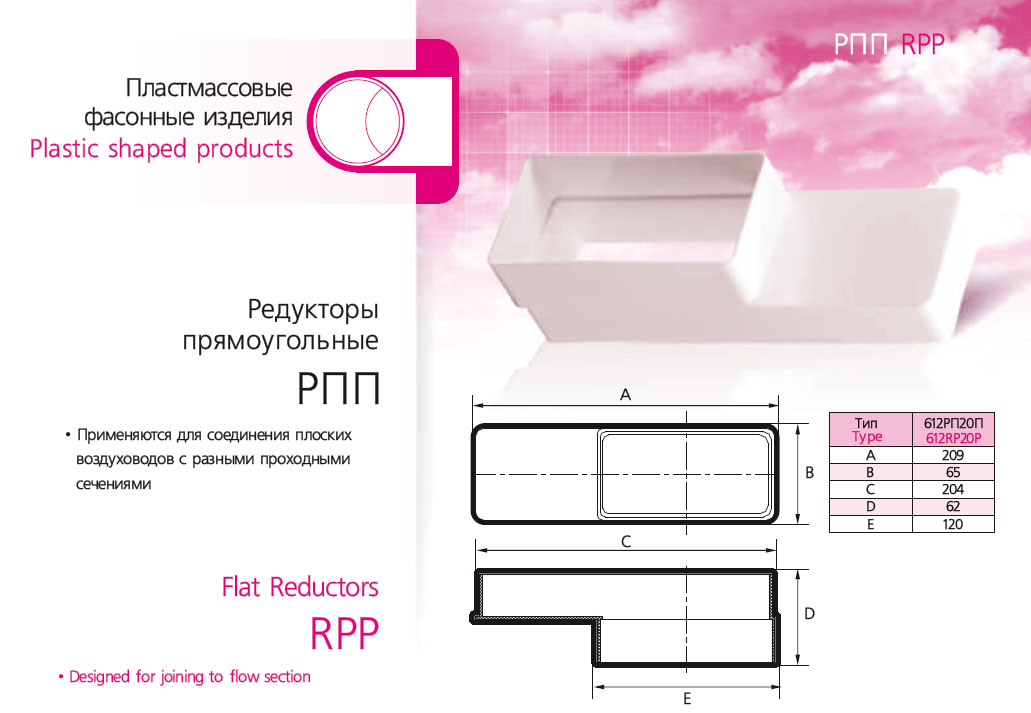 Применяется для соединения плоских воздуховодов с разными проходными сечениями.