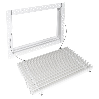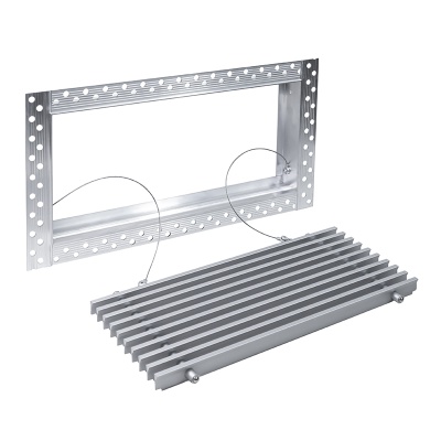 Данная решетка подходит для монтажа на любую поверхность под финишную отделку. Рама оснащена «полкой» 1,9 мм и рифлеными краями для большей адгезии финишного материала – шпатлевки, цемента. Решетка имеет съемную центральную часть с декоративным экраном. Она крепится к корпусу прочными металлическими тросиками, легко снимается для очистки и удобного обслуживания.