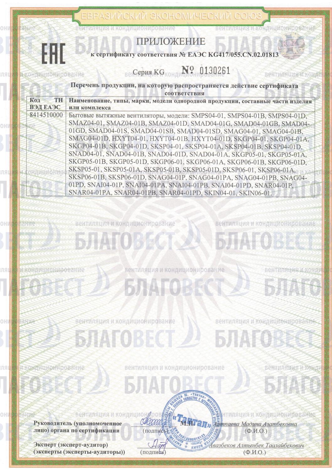 Сертификат соответствия вентиляторы бытовые торговой марки S&P 2025-2030
